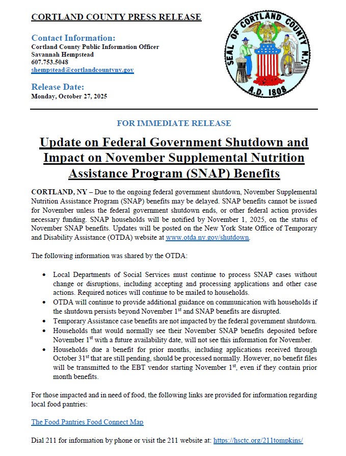 Please see the official County press statement regarding potential changes to SNAP benefits.