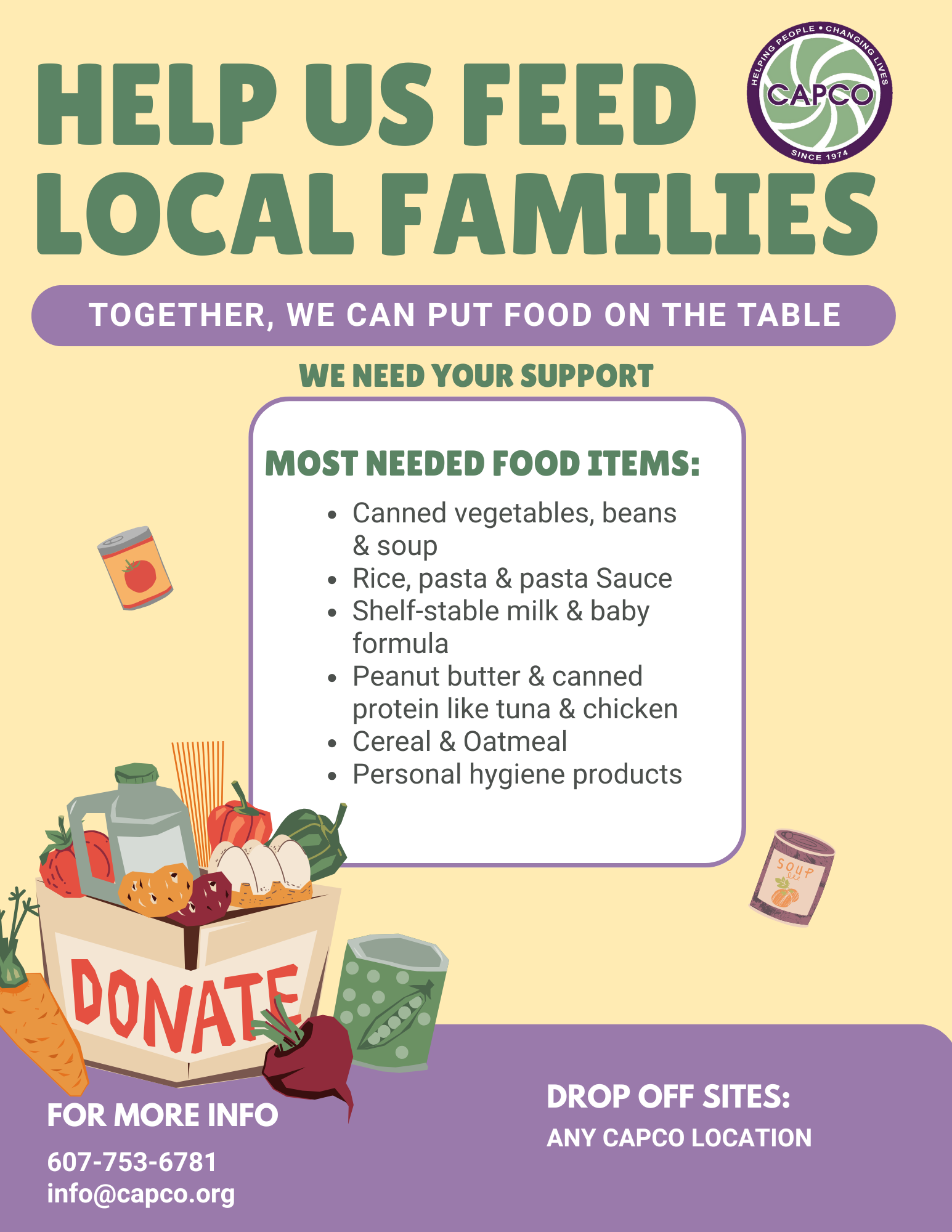 As demand for food assistance is expected to rise, ๐๐๐๐๐ ๐ข๐ฌ ๐ฌ๐ญ๐๐ฉ๐ฉ๐ข๐ง๐ ๐ฎ๐ฉ ๐ญ๐จ ๐ฌ๐ฎ๐ฉ๐ฉ๐จ๐ซ๐ญ ๐จ๐ฎ๐ซ ๐ฅ๐จ๐๐๐ฅ ๐๐จ๐จ๐ ๐ฉ๐๐ง๐ญ๐ซ๐ข๐๐ฌ. Weโre collecting ๐ง๐จ๐ง-๐ฉ๐๐ซ๐ข๐ฌ๐ก๐๐๐ฅ๐ ๐๐จ๐จ๐ ๐๐ง๐ ๐ฉ๐๐ซ๐ฌ๐จ๐ง๐๐ฅ ๐๐๐ซ๐ ๐ข๐ญ๐๐ฆ๐ฌ at all CAPCO locations to help meet community needs.
